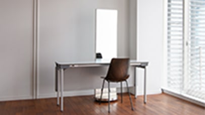 そして、ファサードのガラスも、カーテンやブラインドを背景にすることで、様々な雰囲気の撮影が可能です。