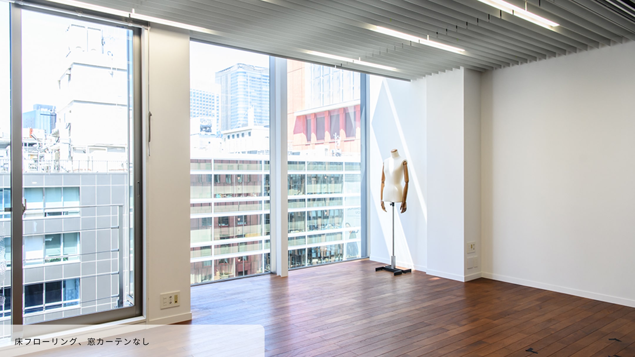 トップライト及びファサードから光りが降りそそぎ、自然光による撮影は勿論、天吊りのパーティションにより同フロアでストロボによる完全遮光の撮影も出来ます。